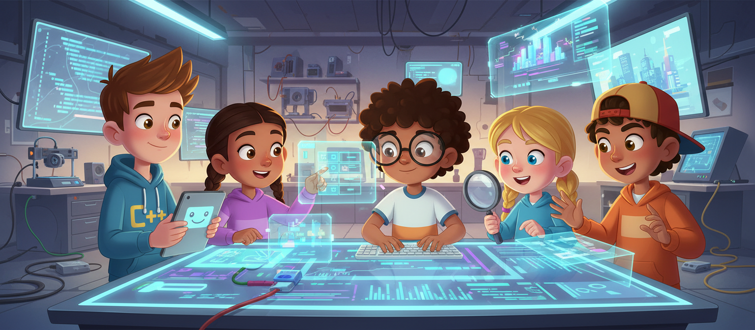 We also incorporate age-appropriate AI principles into our coding camps by teaching kids how computers learn, make decisions, and use data in fun, hands-on ways. Campers also learn about responsible and ethical use of AI, helping them become thoughtful and creative digital makers.